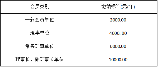 为保证协会工作顺利开展,根据协会章程规定,请按时缴纳年度会员会费,缴纳标准如下: