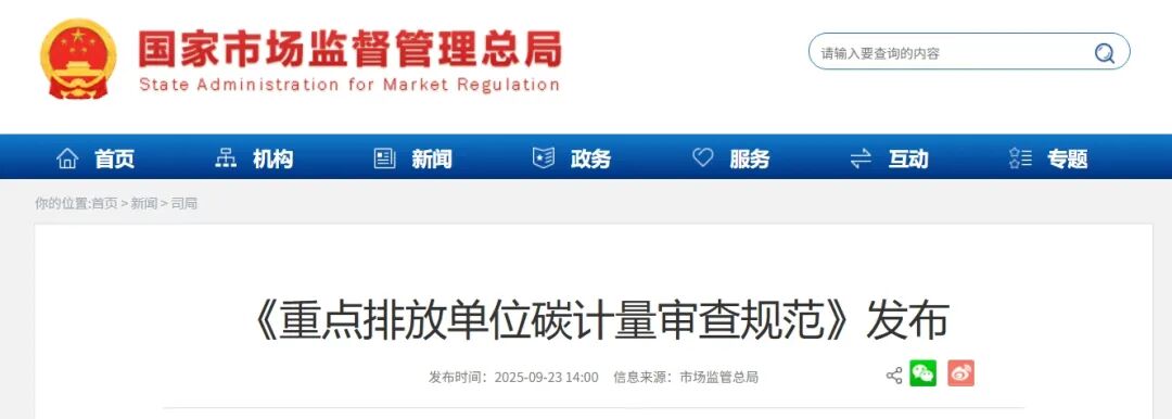 近日,市场监管总局发布《重点排放单位碳计量审查规范》,将于明年3月8日起施行。这标志着我国重点排放单位碳计量工作有了明确、统一的计量审查规范指引,将有力推动和指导重点排放单位碳计量体系建设,切实提升碳计量能力和水平。